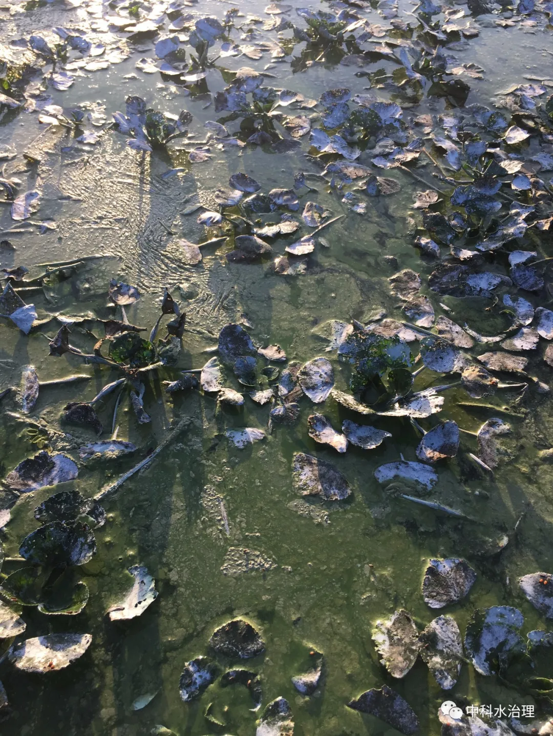 治理前菱、藍藻泛濫,水體富營養化