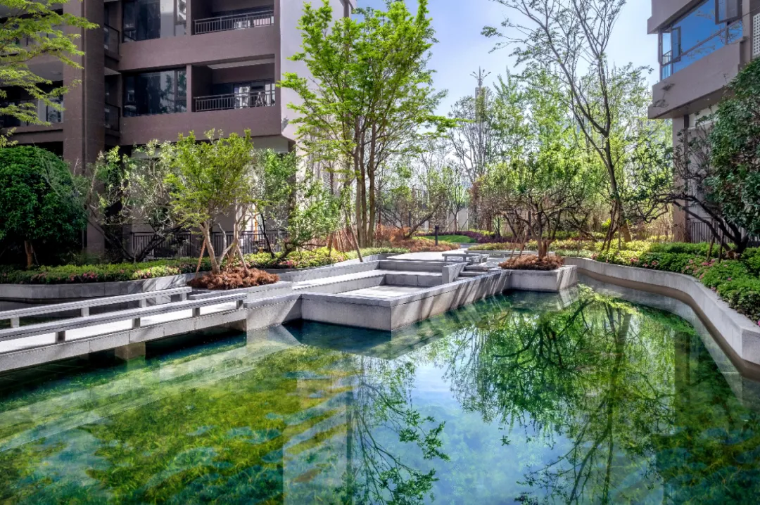 一池水,一片海,它是我們心中美好的水岸島居生活的一個(gè)真實(shí)夢境。設(shè)計(jì)師以現(xiàn)代的手法構(gòu)圖溪岸,融合泛會所、溪流、湖心島等原生態(tài)水岸景觀,再現(xiàn)“岸梅溪春又生”的自然時(shí)尚居所,給人以森林般的水岸島居體驗(yàn),展現(xiàn)島居住宅和諧精緻之美。